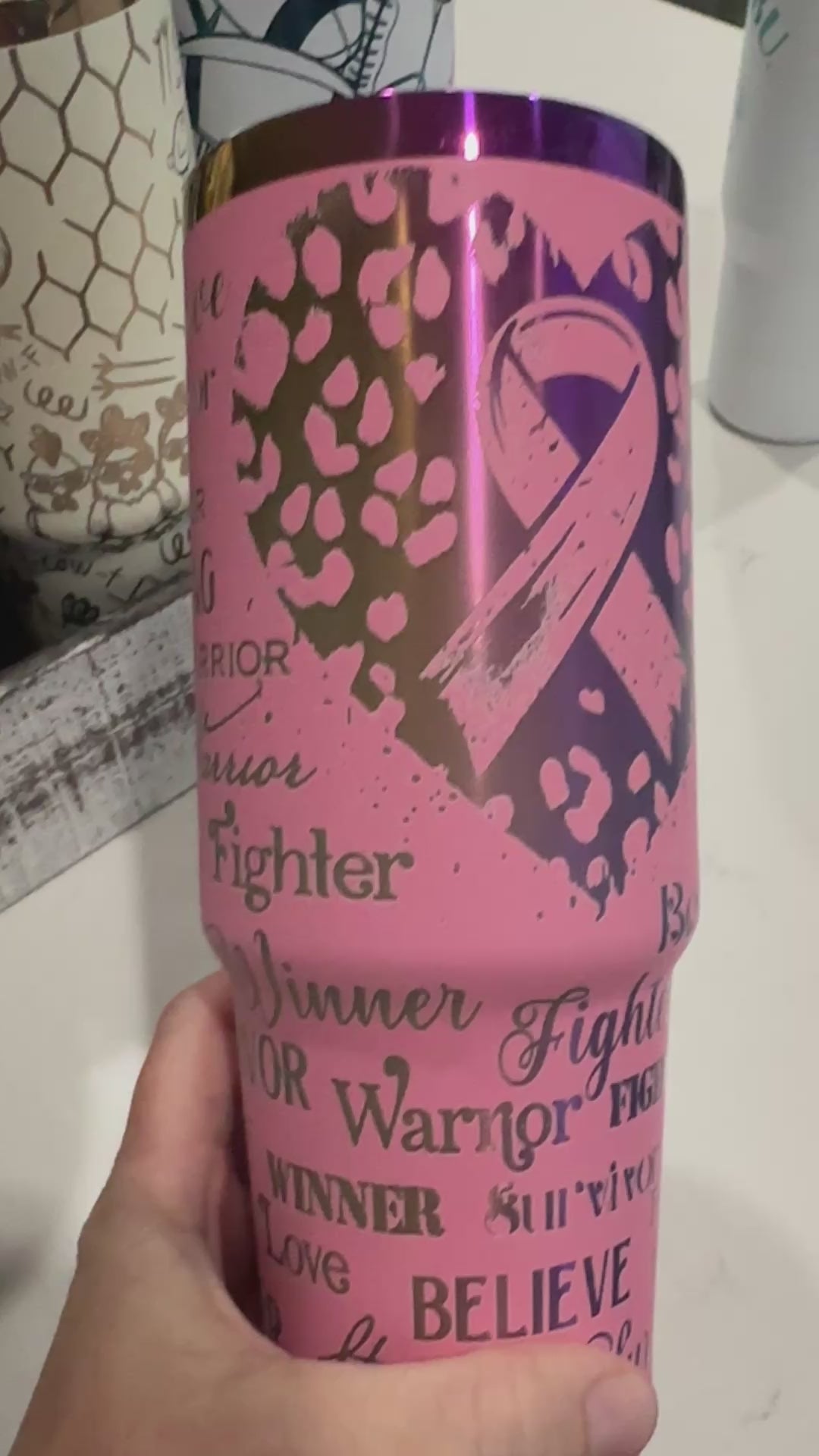 Show your support with the Breast Cancer Awareness Tumbler, available in vibrant Hot Pink and gentle Soft Pink with a subtle rainbow undertone. Designed for everyday use, it fits perfectly in your car cup holder and is dishwasher safe for easy cleaning. The double-wall vacuum insulation keeps your beverages hot or cold for 8–12 hours, making it a practical companion for fighters, survivors, and supporters alike. Carry strength and hope wherever you go.